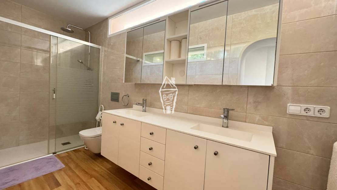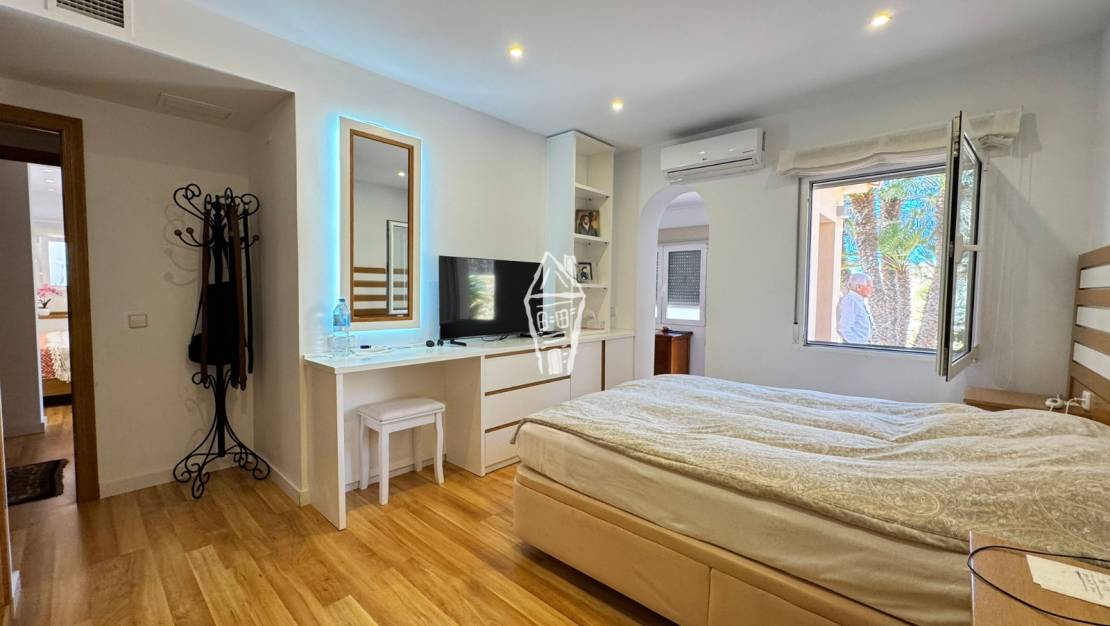 La villa individuelle, ou chalet, s'étend sur un terrain de près de 1 000 m², et la maison, sur 388 m². Le rez-de-chaussée comprend 3 grandes chambres, toutes avec de grandes salles de bains, une véranda fermée ou un salon dans l'une des chambres, une buanderie, un espace piscine, un barbecue et un parking privé, le tout avec une magnifique vue sur la mer.